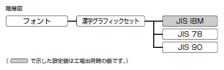 グラフィックセットとは、コンピュータから送られてくるコードに対して、どの文字を割り当てるかを取り決めたもので、それを表にしたものがコード表です。漢字コードは、IBM標準のコード、1978年版の旧JIS(JIS78)コード、1990年版の新JIS(JIS90)コードに準拠しています。新JISでは、旧JISに新しい特殊記号39文字と罫線32文字が追加されているほか、約300種類の漢字のフォントが変更されています。