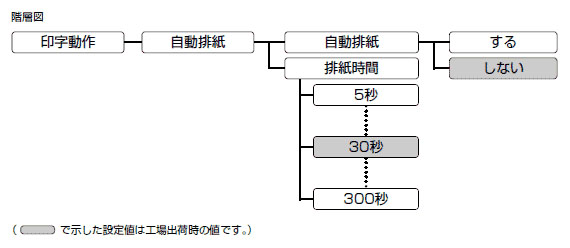 5秒~300秒(「自動排紙」を[する]に設定し、「排紙時間」で時間を指定)