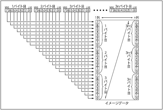 3バイト転送モードによるイメージデータの印字は次のようになります。