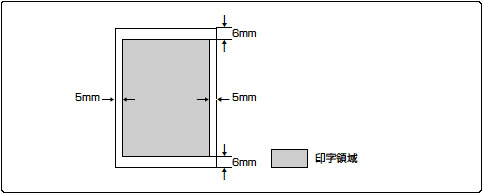 TOF行は用紙の上端から約6 mmの位置になり、第1文字目の印字位置は、有効印字領域の左端とほぼ同じ位置になります。