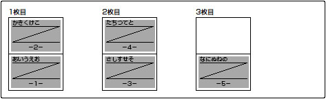 たとえば、5ページ分の印字データは、次のように印字されます。