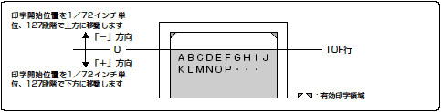 印字開始位置を下方にずらす場合はプラス(+)方向、上方にずらす場合はマイナス(-)方向になります。