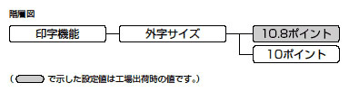 登録文字をドット列イメージと同じ展開方法で拡大し、印字します。この方法で登録した文字の大きさは、10.8ポイントになります。