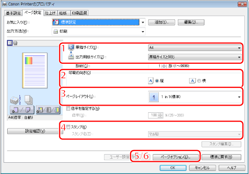 実際にプリンターから出力する用紙サイズを選択します。用紙サイズに合わせて、印刷データを拡大/縮小できます。