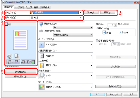 画面の表示方法については、「印刷する」または「あらかじめ印刷の設定をする」を参照してください。