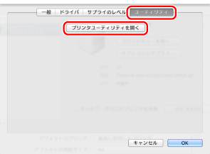 [ユーティリティ]→[プリンタユーティリティを開く]をクリック