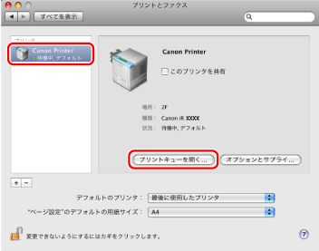 お使いのプリンターを選択→[プリントキューを開く](または[プリントキュー])をクリック
