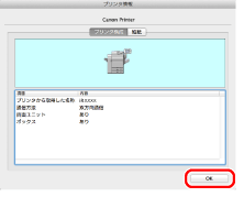 [プリンタ情報]ダイアログの上部に表示されているプリンタードライバー名と、[プリンタから取得した名称]に表示されているプリンター名が正しく対応していない場合は、プリンターの機能を正しく使用できないことがあります。この場合は、[システム環境設定]で追加したプリンターを削除して、もう一度プリンターを追加しなおしてください。詳細は、プリンタドライバガイドを参照してください。(→「 インストールする」)