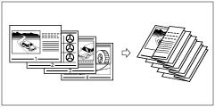 [回転+ソート]、[回転+グループ]を設定する場合、同じサイズの用紙を縦向きと横向きにセットしておく必要があります。両方の向きの用紙がセットされていない場合は、セットされている向きの用紙にすべてのページがプリントされます。