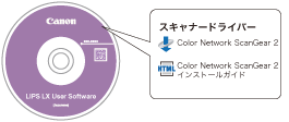 スキャナードライバーは、プリンタードライバーと同様にUser Software CD-ROMに収録されています。