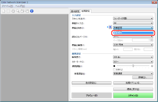 フィーダーからスキャンする場合、コンピューターの画面上で正立して表示するように設定することができます。