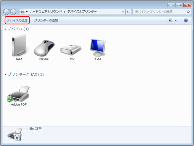 ](スタート)から[デバイスとプリンター]をクリックWindows 8をお使いの場合は、デスクトップ画面右上(右下)にカーソルを置き、[設定]→[コントロールパネル]→[ハードウェアとサウンド]の[デバイスとプリンター]を選択