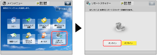 (メインメニュー)→[リモートスキャナー]→[オンライン]を押す