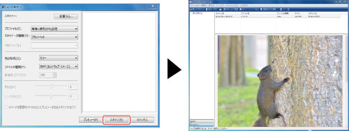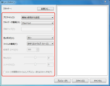 [プレビュー]を押すとスキャン画像が右側に表示されますが、コンピューターには保存されません。
