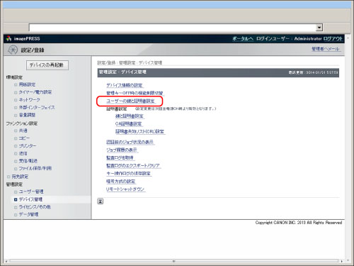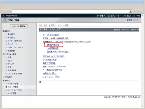 本機能は、システム管理者情報の設定をしていて、ユーザー署名&タイムスタンプ拡張キットが有効な場合のみ表示されます。