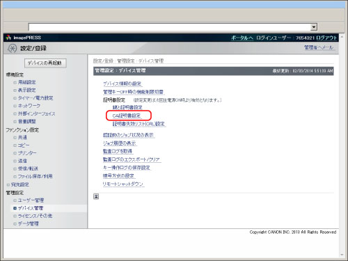 CA証明書をインストールする場合は、管理者としてログインする必要があります。