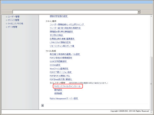 タイムスタンプ用のライセンスファイルをインストールする場合は、管理者としてログインする必要があります。