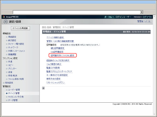 証明書失効リスト(CRL)をインストールする場合は、管理者としてログインする必要があります。