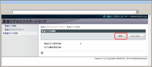 本機能で管理可能なログの件数は、ログの種類にかかわらず2万件までです。ログがいっぱいになった場合は、古いログが順に消去されて、新しいログに上書きされます。