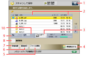 フォルダーの操作、詳細情報の確認、およびファイルの編集や削除方法については、「保存ファイルの利用」を参照してください。
