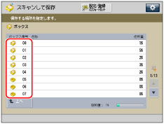(メインメニュー)→[スキャンして保存]→[ボックス]を押す