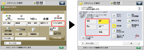 カラーモードにかかわらずPDF形式で保存されます。さらに、追加設定を選択できます。
