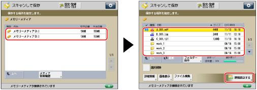 (メインメニュー)→[スキャンして保存]→[メモリーメディア]を押す
