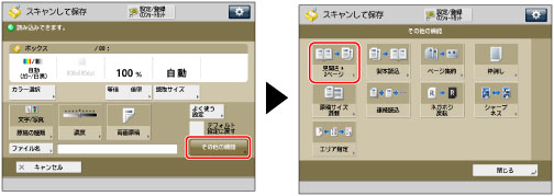 雑誌や本などの見開きの左右ページを1回の操作で別べつに読み込みます。