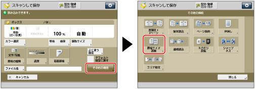 読取サイズで[自動]以外を設定すると、原稿は指定した読取サイズですべて読み込まれます。セットした原稿サイズのまま読み込むときは、[自動]を設定してください。