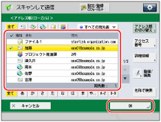 (メインメニュー)→[スキャンして送信]→[アドレス帳]を押す