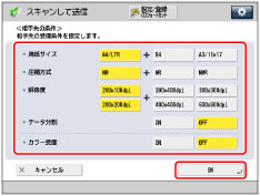 送信する用紙サイズを設定します。A5は[A4/LTR]に含まれます。