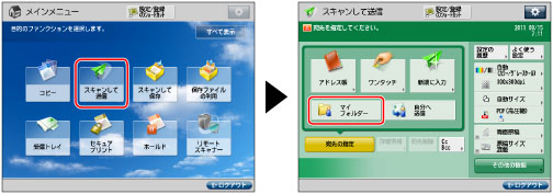 (メインメニュー)→[スキャンして送信]→[マイフォルダー]を押す