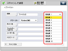 ColorPASS、またはimagePASSを装着している他のimageRUNNER ADVANCEシリーズのアドバンスドボックスに保存するときは、[WebDAV]を選択してください。(Windows(SMB)では送信できません。)
