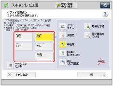 PDF、XPSまたはOOXML形式で送信する場合は、より詳細に設定できます。各PDF/XPS/OOXMLの設定方法は次を参照してください。