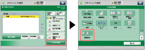 1回の送信で送信できるページ数は999ページです。[連続読込]を設定しているときは、原稿の読み込みが999面を超えたところで送信するかどうか確認するメッセージが表示されます。送信すると999面までを送信します。キャンセルすると送信されません。
