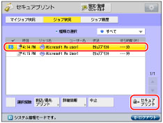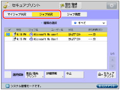 SSO-Hの管理者としてログインしたときはすべてのユーザーのジョブが表示され、詳細情報の表示/プリントの中止が可能です。ただし、セキュア文書と暗号化セキュア文書は、データを送ったユーザー以外がプリントすることはできません。