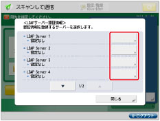 [ファンクション設定]→[共通]→[認証方式設定]→[LDAPサーバー認証で使用する情報]を押す