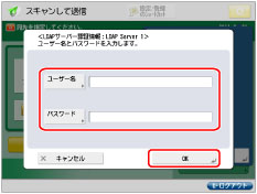 LDAPサーバーアクセス時の[ユーザー名]と[パスワード]を入力して[OK]を押す