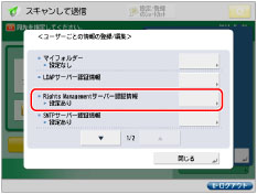 本機に設定した[Rights Managementサーバー設定]の認証情報を使用します。(→Rights Managementサーバーの設定をする)ユーザーごとの設定は不要です。
