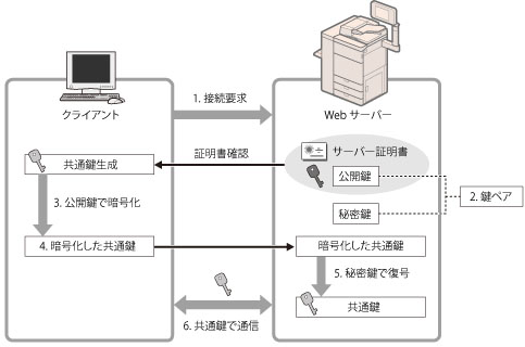 ユーザーのコンピューターから本製品へアクセスするとき、SSLのサーバー証明書とサーバーの公開鍵を要求します。