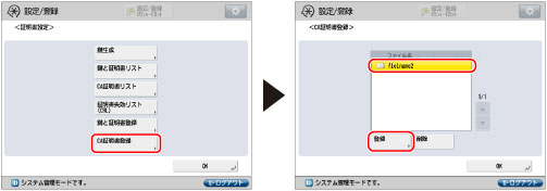 [管理設定]→[デバイス管理]→[証明書設定]を押す
