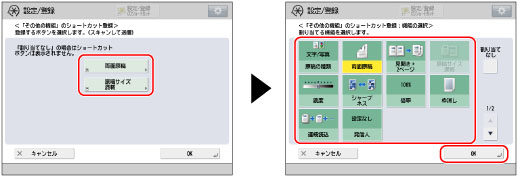 ショートカットボタンを押す→ショートカットボタンに登録する機能を選択→[OK]を押す