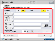 <SMTP受信>の[ON]→<POP>の[OFF]を押す