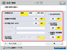 通信内容を暗号化する場合は、<SSLの許可(SMTP送信)>を「ON」に設定します。