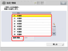 発信人の名称を登録する番号(項目)を選択→[登録/編集]を押す