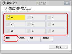 設定内容を上書きするボタン([M1]~[M9])を選択→[登録]を押す