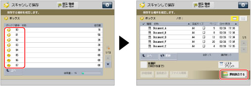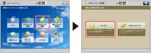 (メインメニュー)→[スキャンして保存]→[ボックス]を押す