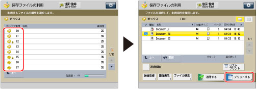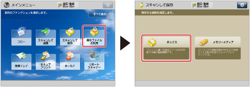 (メインメニュー)→[保存ファイルの利用]→[ボックス]を押す