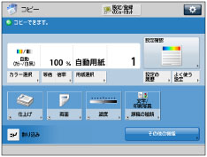 [部門別ID管理]を「ON」に設定し、ファンクション制限の対象となっている機能を起動/復帰後に表示する画面として設定した場合は、起動/復帰後の画面にメインメニュー画面が表示されます。([コピー]は、[部門別ID管理]が「ON」に設定されていれば、ファンクション制限の対象となります。)起動/復帰後に表示する画面として設定した機能を表示させるには、メインメニュー画面でファンクションキーを選択したあと、ログイン画面で部門ID/暗証番号を入力してください。
