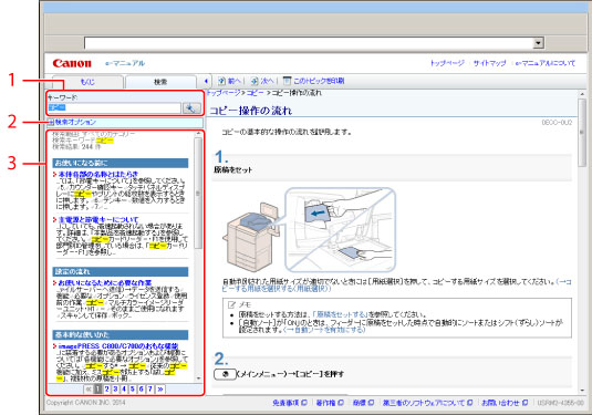 入力された語句の検索結果が表示されます。 検索結果が 10件を超える場合は、検索結果の下の[« 前へ][次へ »]をクリックするか、数字をクリックして検索結果を切り替えることができます。 |